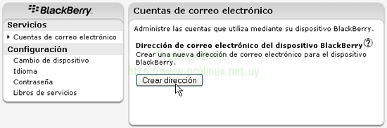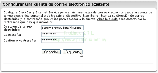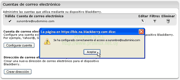 Configuración de casillas de correo en BlackBerry (para usar con ProLinux E-Mail Server 2.0)