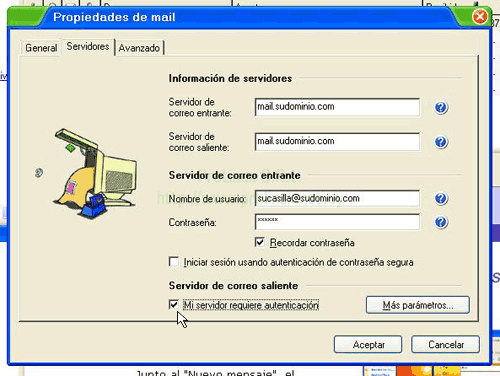 - Seleccione la pestaña "Servidores" y marque la opción "Mi servidor requiere autenticación"