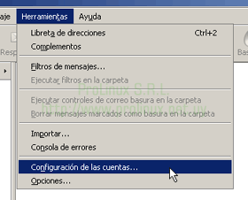 - Seleccione en el menú "Herramientas", el item "Configuración de las cuentas..."