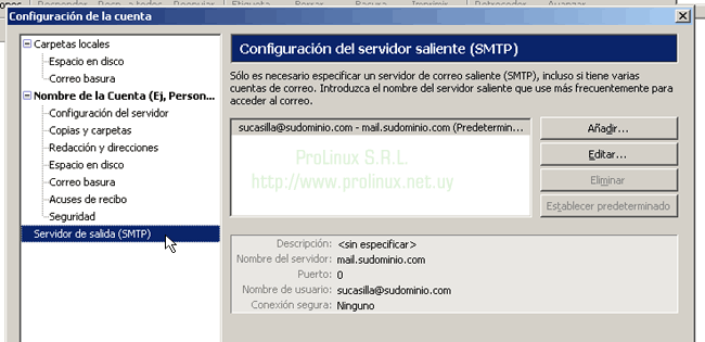 Configuración de casillas de correo en Mozilla Thunderbird (para usar con ProLinux E-Mail Server 2.0)
